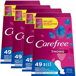 Carefree Acti-Fresh Thong Panty Liner Unscented, Regular, 49ct (Pack of 4)