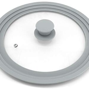 TOPULORS Universal Lid for Pots, Pans and Skillets, Tempered Glass with Silicone Rim Fits All 9 to 11 Inch Diameter Cookware, Frying Pan Cover, Replacement Lid, Dishwasher Safe, Grey