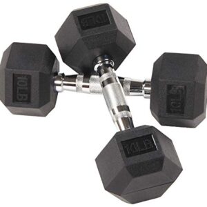 Signature Fitness Rubber Encased Hex Dumbbell, 10LB Pair